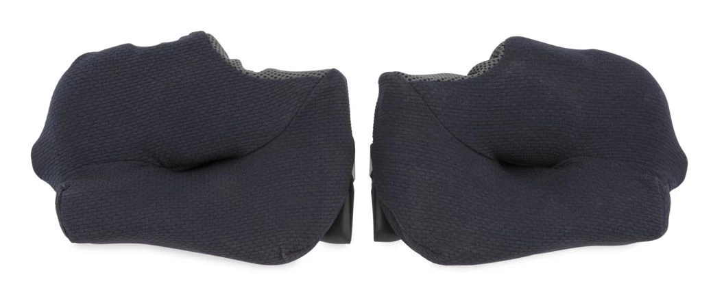 Replacement cheek pads for the Arai Corsair X, Quantum X and Signet X Helmets. All cheek pads are interchangeable between all helmet sizes.