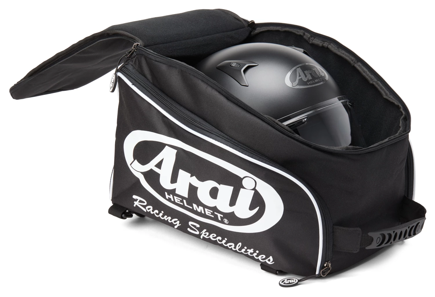 The Arai Helmets Premium Helmet Bag features heavy padding on all sides for ultimate protection. Fits even the largest Arai helmet size and Arai’s motocross/ADV helmets with the peak installed.