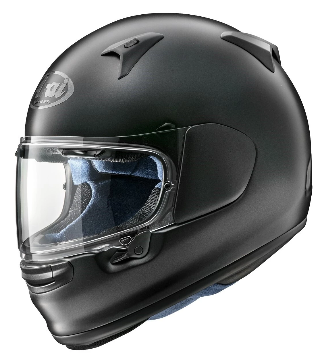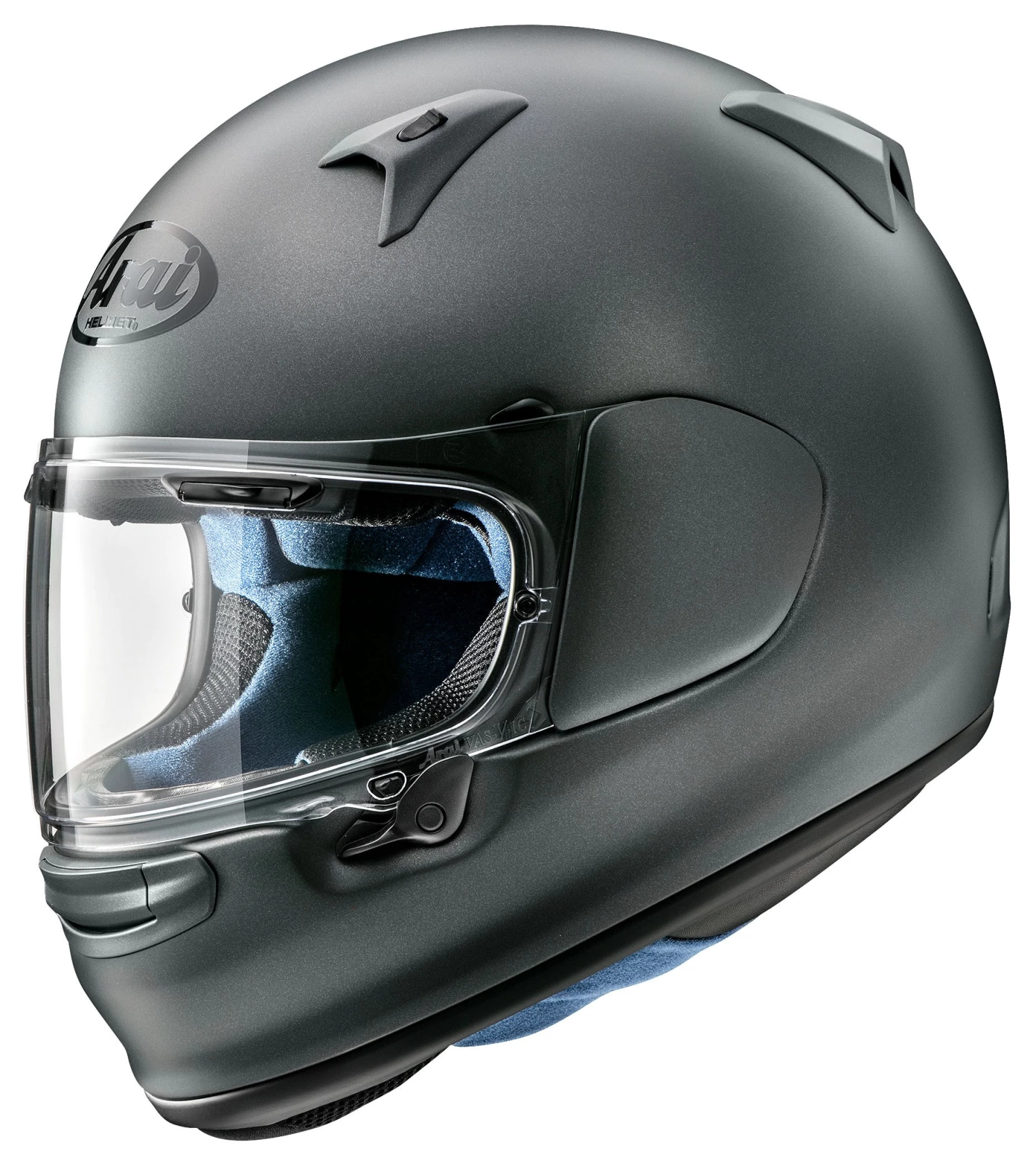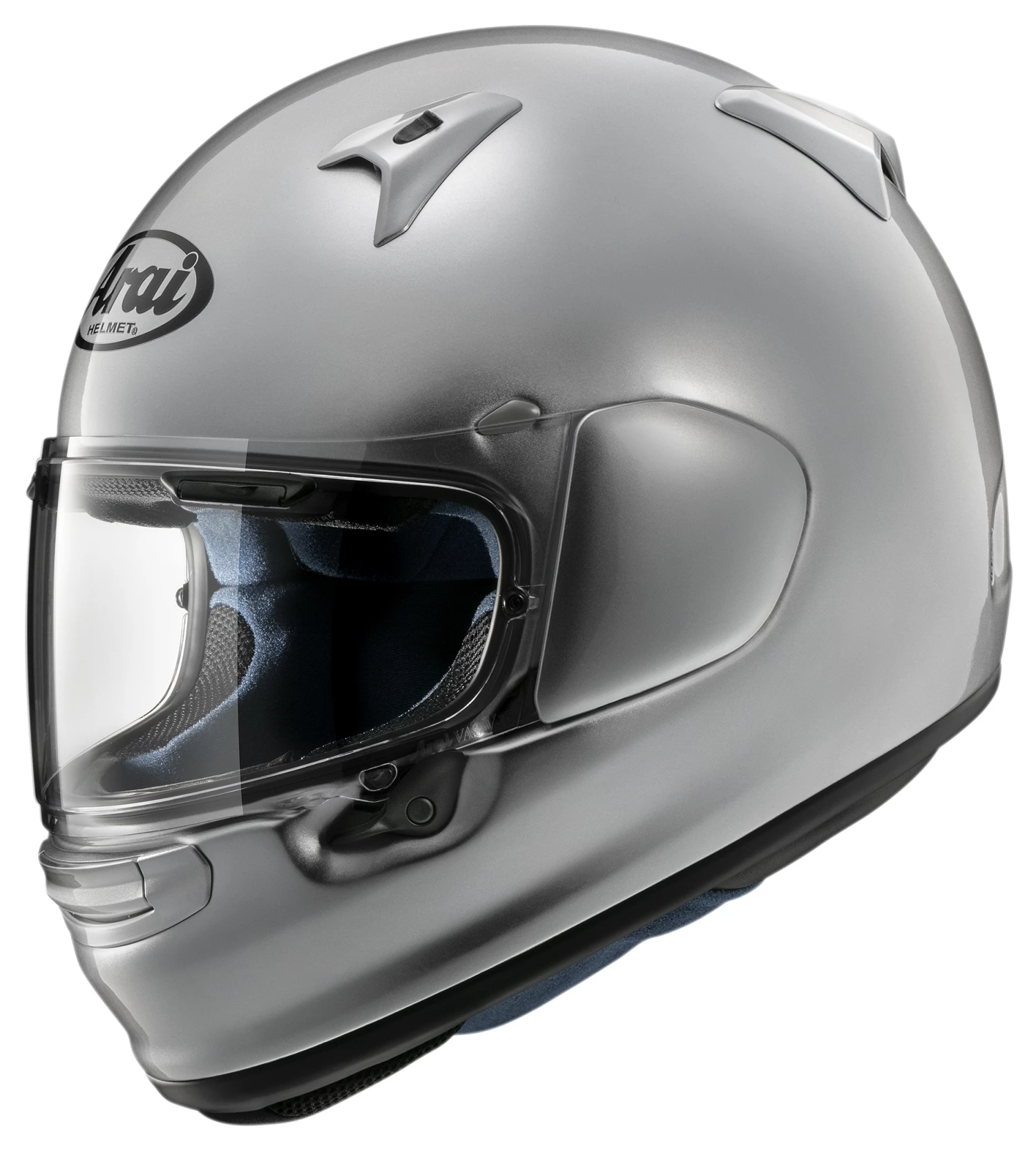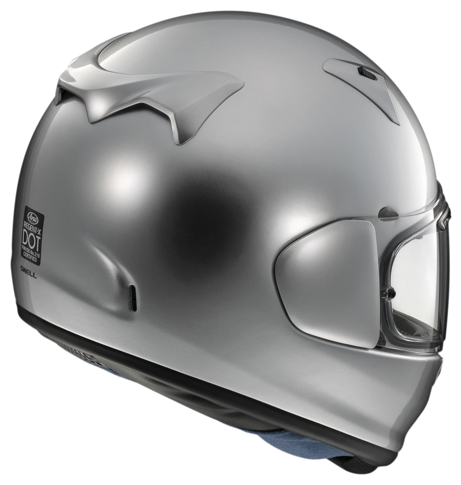 The Arai Regent-X Helmet has a 5mm wider base opening to make the helmet easier to enter and exit. The lightweight shell lets impact forces glance off. When combined with a multi-density EPS liner, the protection an Arai helmet provides is top-notch. Multiple entry and exhaust vents throughout the helmet make up Arai’s Free Flow System to keep hot moist air moving out of the helmet without excessive wind noise. The top liner of the helmet is fixed in place, but the cheek pads can be removed if they ever need a washing or replacement. The Arai Regent-X Helmet delivers comfort and protection with an intermediate oval internal head shape.