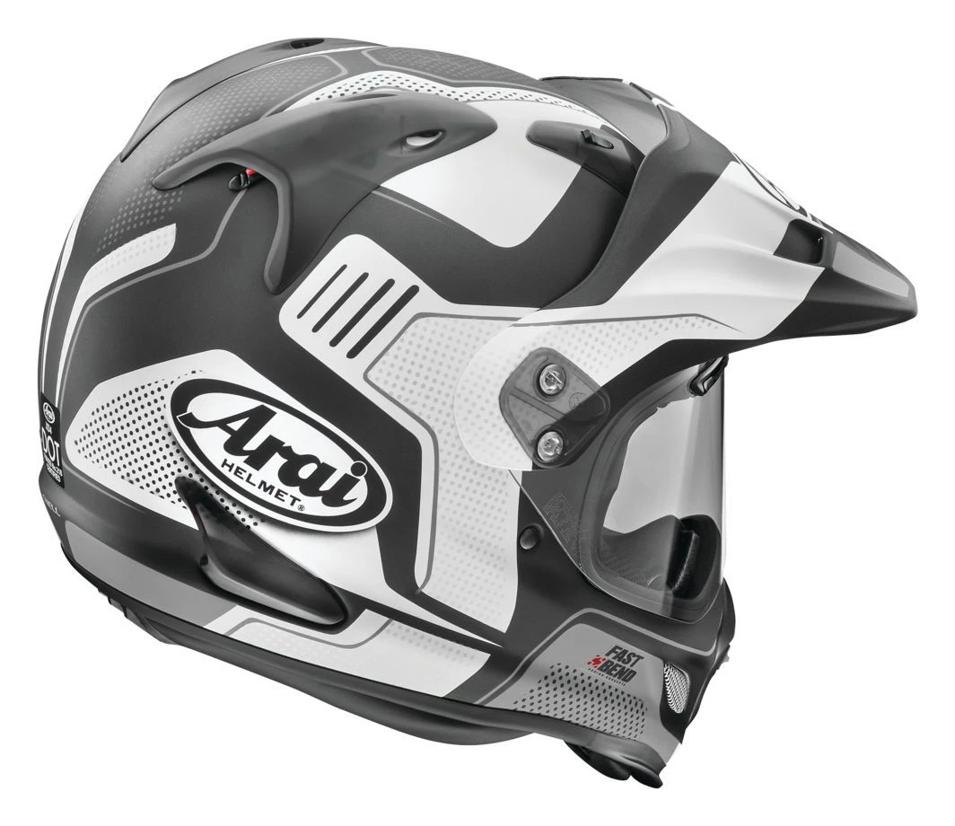 The Arai XD4 can be configured three different ways: face shield and peak, peak only, or face shield only. The XD-4 includes cheek pads that feature 5mm peel-away pads that allow riders to tailor their fit. The shell of the Arai XD4 peak channels into the vents, improving overall ventilation and lessening choppiness while riding. The Twin Cam face shield pivot system allows the face shield to operate fully under the adjustable peak. The Arai XD-4 is the helmet of choice for ADV riders and sets the standard for comfort, quality and safety.
